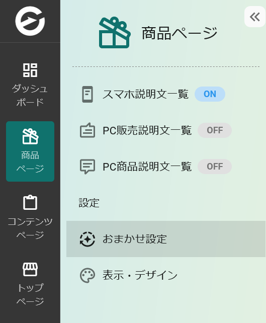 (1)EC-UPログイン後、左メニューにある「商品ページ」をクリックし、