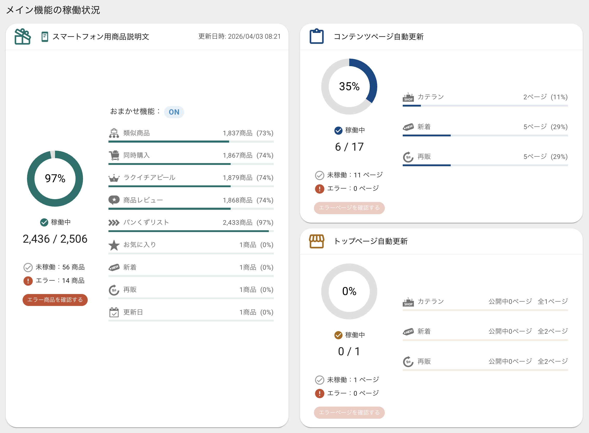 メイン機能の稼働状況 ・スマートフォン用商品説明文