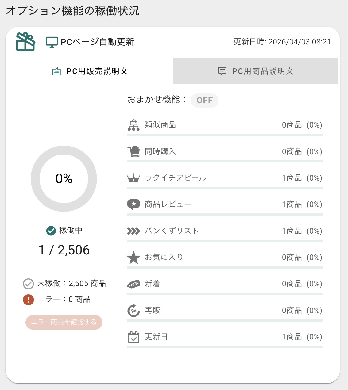 ・オプション機能:PCページ自動更新の稼働状況を表示しています。