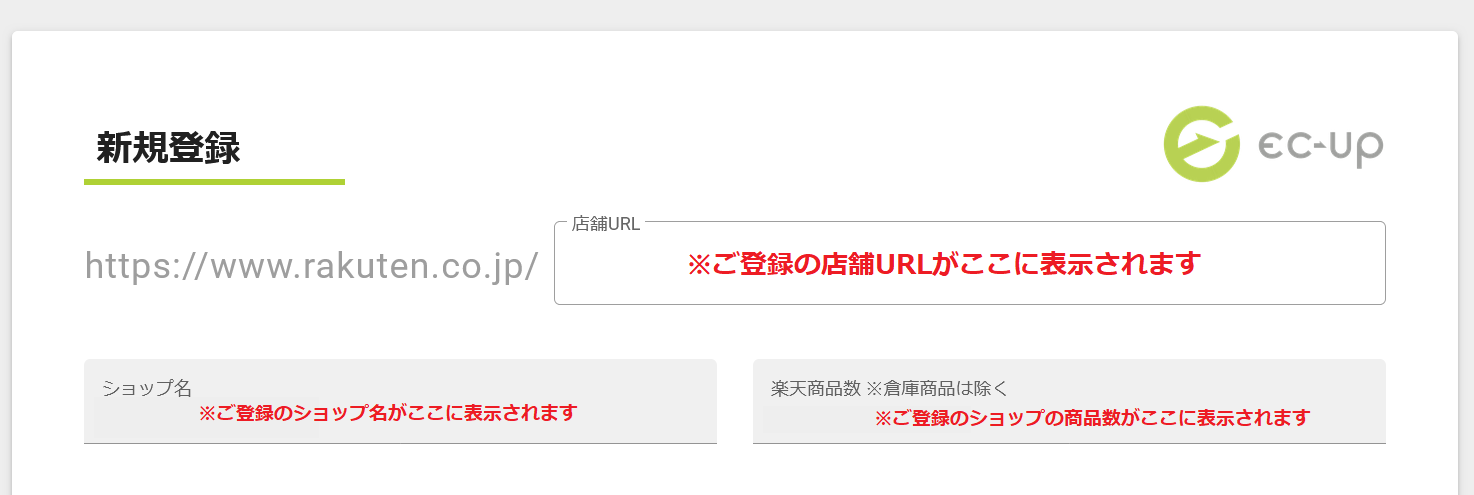 新規登録画面から店舗URLを入力、画面内のスライドにてご案内しております。
