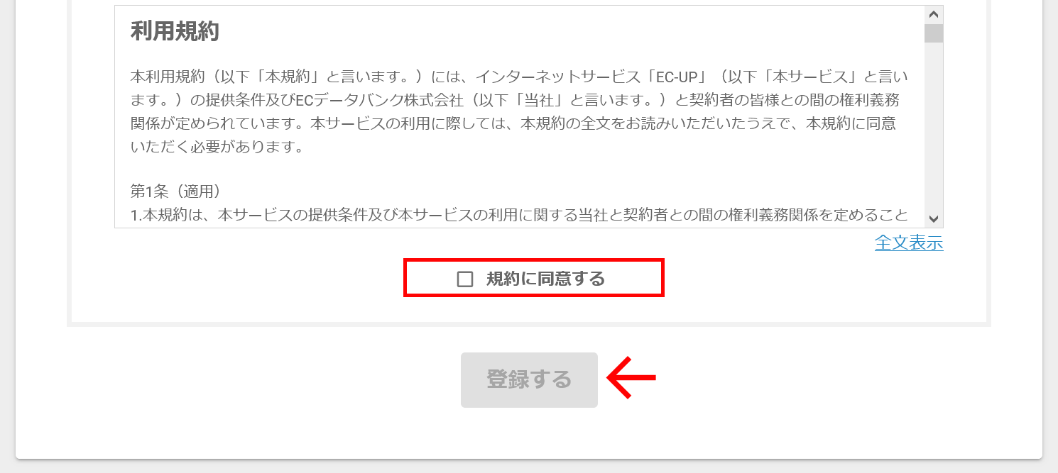 利用規約をご確認の上規約に同意する にチェックを入れ、登録ボタンを押してください。