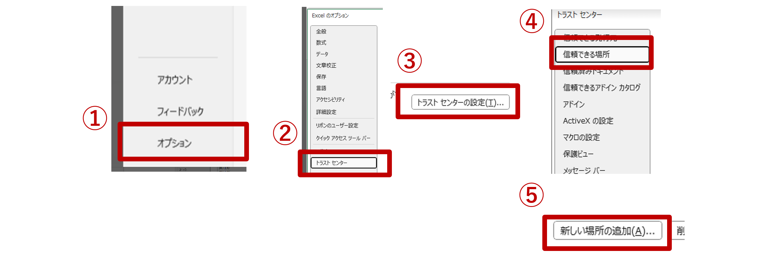 この作業でアドインを置いた場所がセキュリティー的に信頼できる場所として読み込まれます。