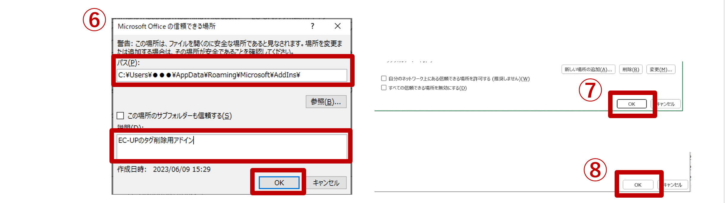 7. 信頼できる場所の画面右下にある「OK」ボタンをクリックして下さい